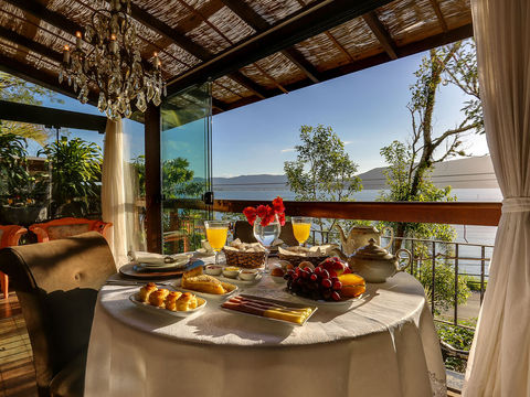 Hospedagem com exclusividade e conforto, são três amplas suítes com Jacuzzi e vista panorâmica para a lagoa, montanhas e lindo pôr do sol, uma paisagem de tirar o fôlego.