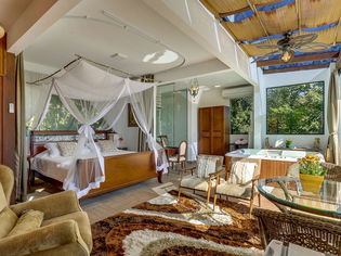 Apenas 12 mesas compõem o salão, decorado com cristais, móveis rústicos e antiguidades. As grandes janelas de vidro na varanda, se abrem e vislumbram o entardecer na Lagoa da Conceição.