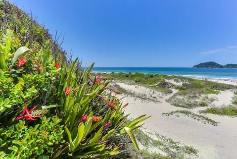 O percurso é tranquilo, serpenteando em meio a vegetação nativa, no sobe e desce das dunas e pequenos combros de areia, avistamos margaridas, bromélias e os morros das praias do sul da ilha.