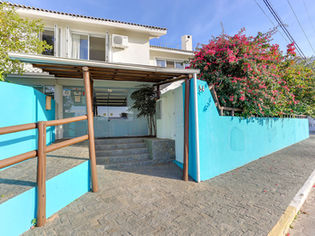 Fica no bairro de Jurerê Tradicional, o canto direito da praia mais famosa de Floripa, localizada em uma rua tranquila, a 50 metros do mar de águas calmas verde-esmeralda.