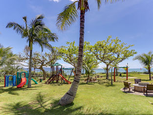 Ampla área de lazer, lindos jardins com mesas e cadeiras a beira mar, quadras de vôlei de areia, futebol infantil e beach tênis, segurança 24h, estacionamento, serviços de camareira e wi-fi.
